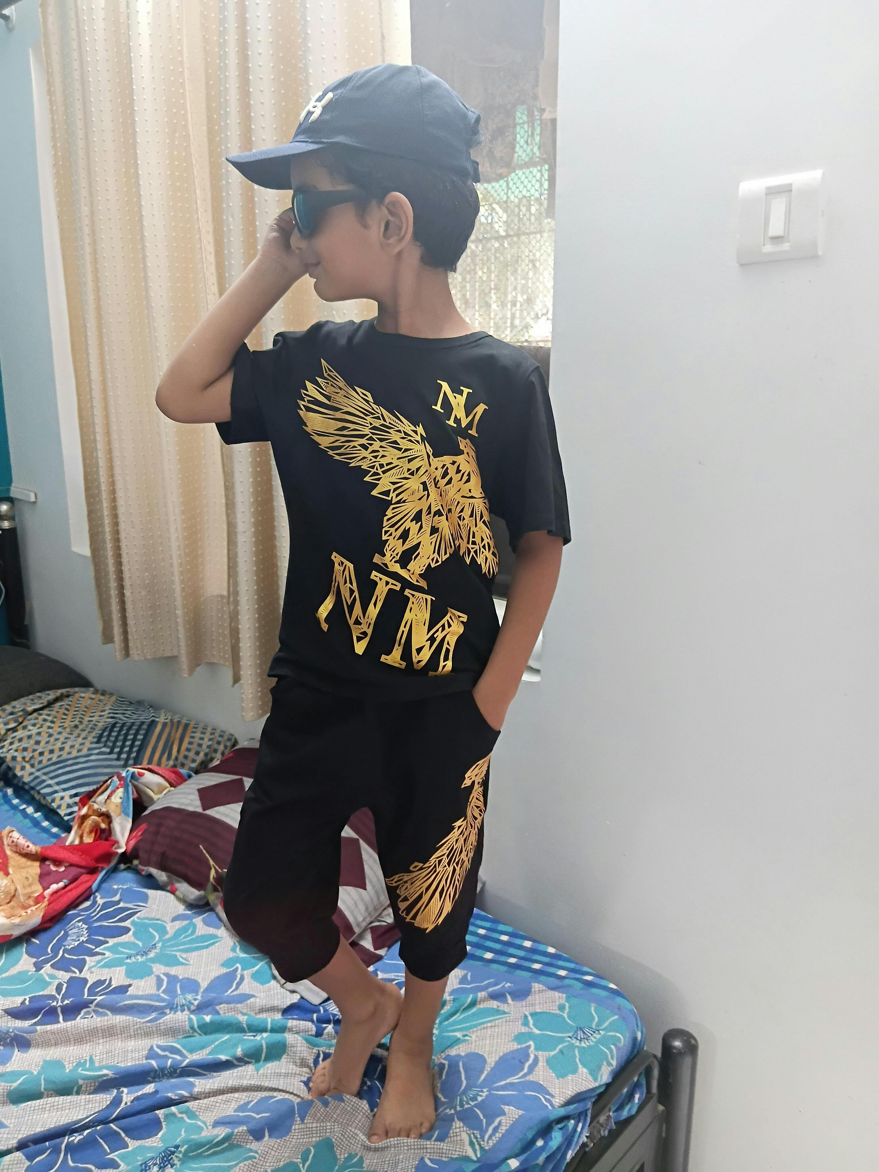 Boys Foil Print T-shirt with Bermudas Set Sets
