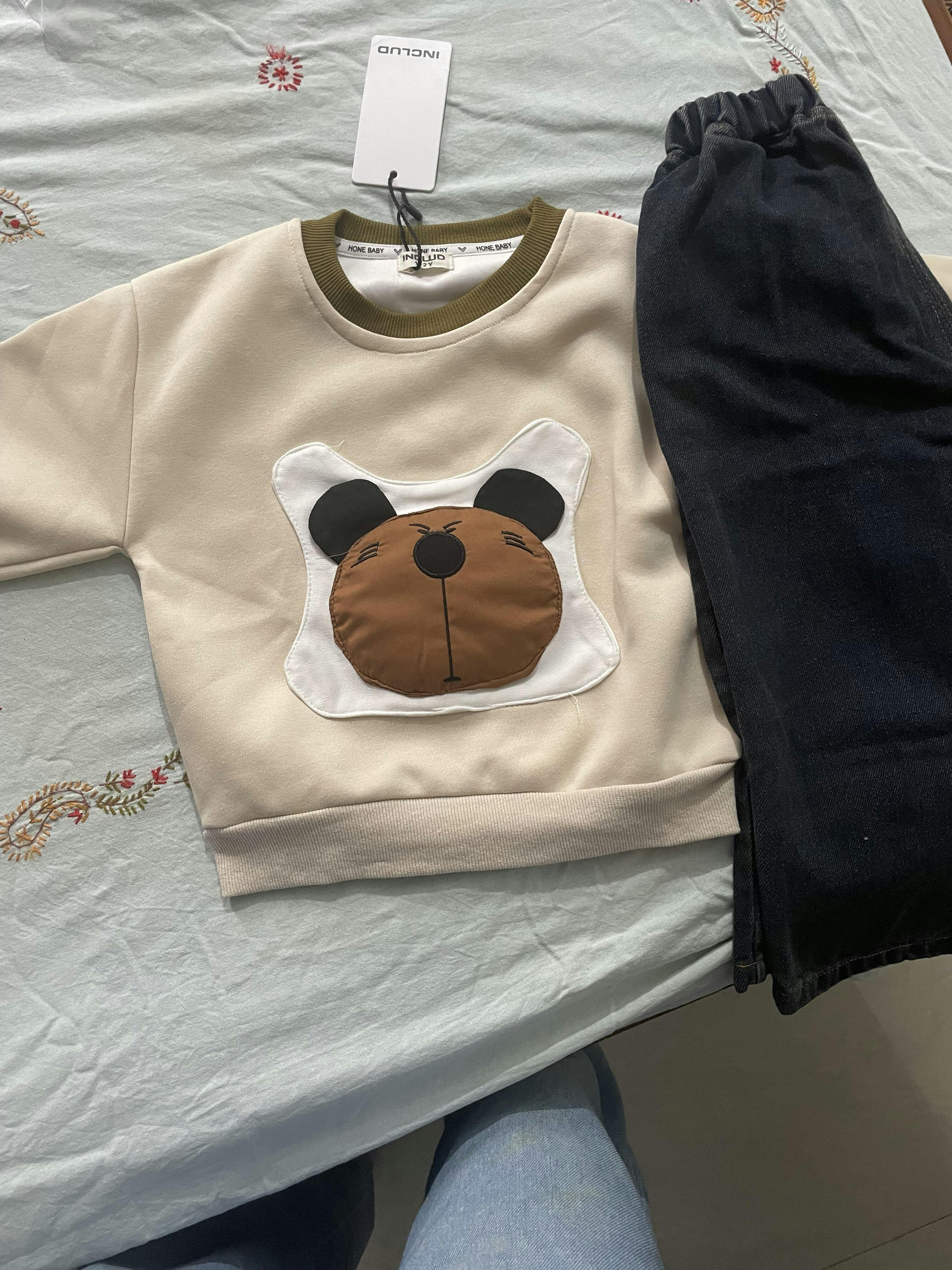 Boys Beige Graphics Sweatshirt With Denim Trousers Sets 2 pc. Sets